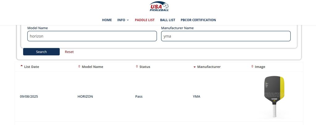 This means the Horizon paddle has successfully passed all USA Pickleball tests and has been added to the official list of USA Pickleball-certified paddles, now accessible to pickleball players nationwide.